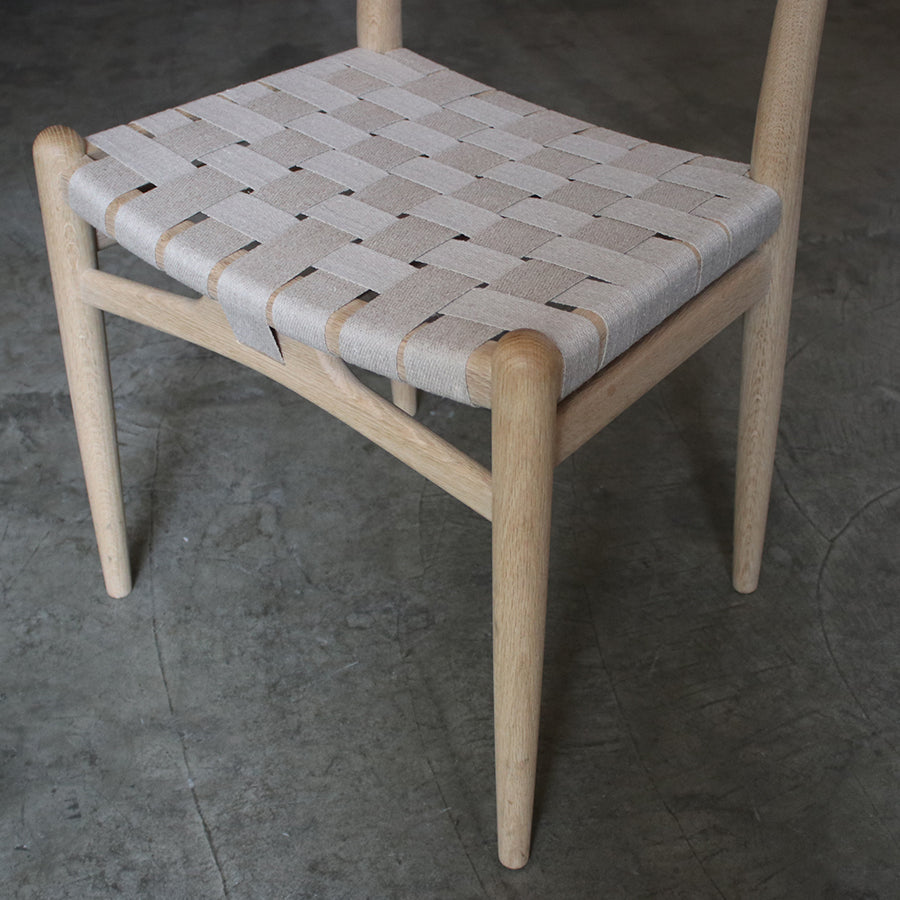 PP101の座面には、通常の既成素材ではなく このチェア専用に設計・開発された手織りリネンウェビングが用いられています。