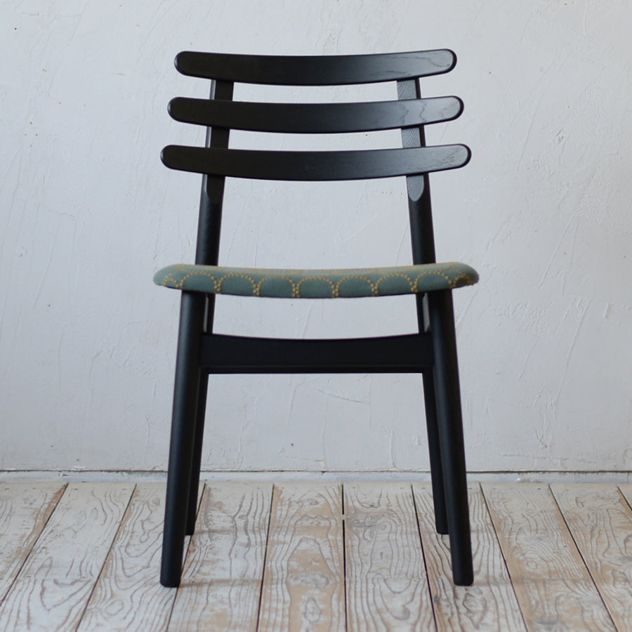 丸みをおびた3本の笠木が独創的なダイニングチェア。 好みに合わせて選べるフレームと生地の組み合わせで、あなたらしい一脚を。