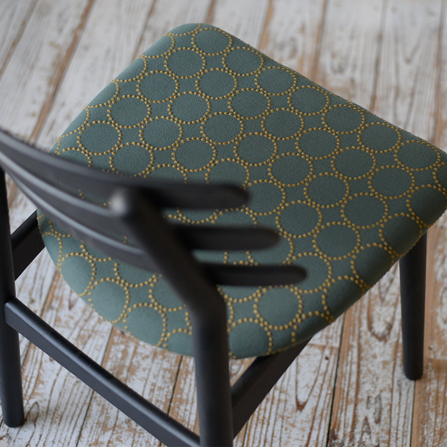 J48の座面にミナペルホネンの人気生地を使用したモデル お部屋に一脚あると、今までよりも明るい雰囲気で生活に彩りを与えることができおすすめです。