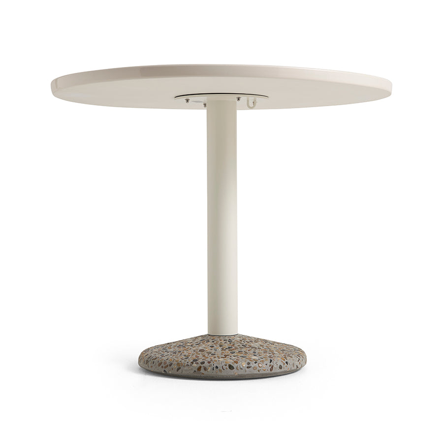 磁器天板、スチールの支柱、そしてコンクリートベース。