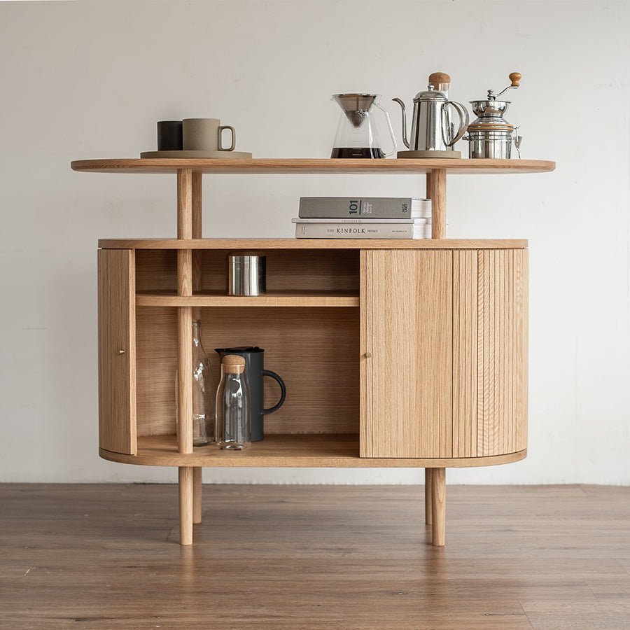 飾り棚として楽しむ一方で、生活感を隠したい物をすっきりと収めることも可能です。