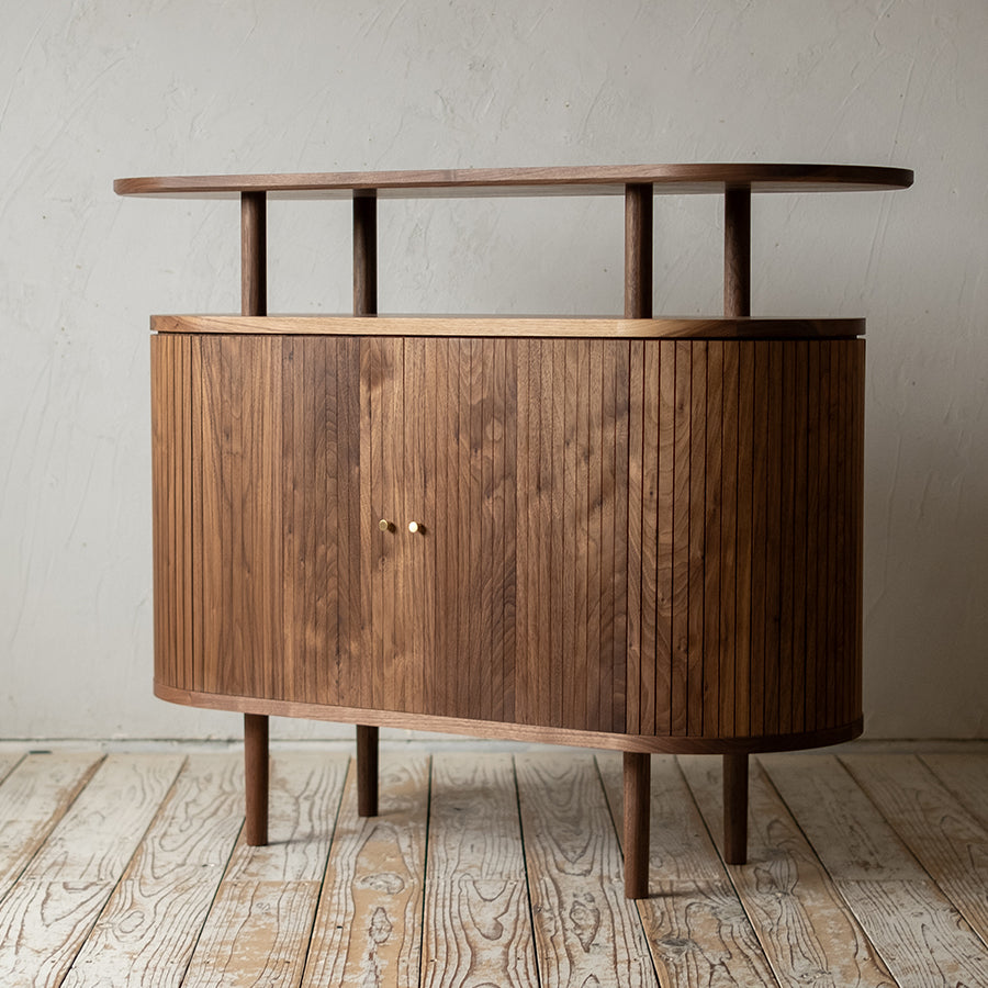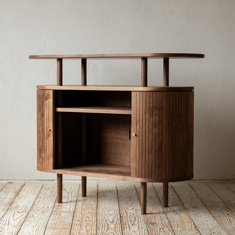 現代の家具にはあまり見られない、特徴的なタンブールドア(蛇腹扉)。
