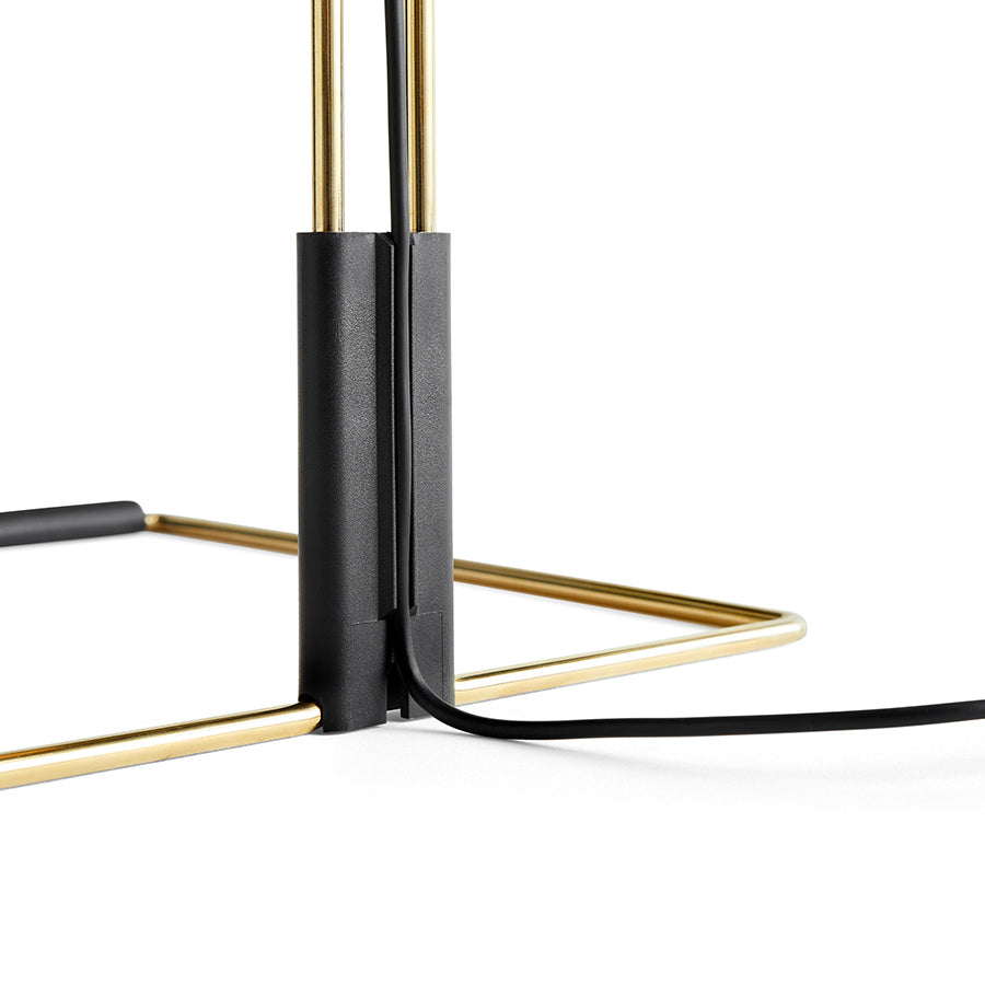 艶やかなブラスに仕上げたスチールワイヤーベンドフレームとマットブラックのハードウェア、鮮やかな色のプリーツコットンシェードを組み合わせることで繊細さが魅力的なデザインになっています。