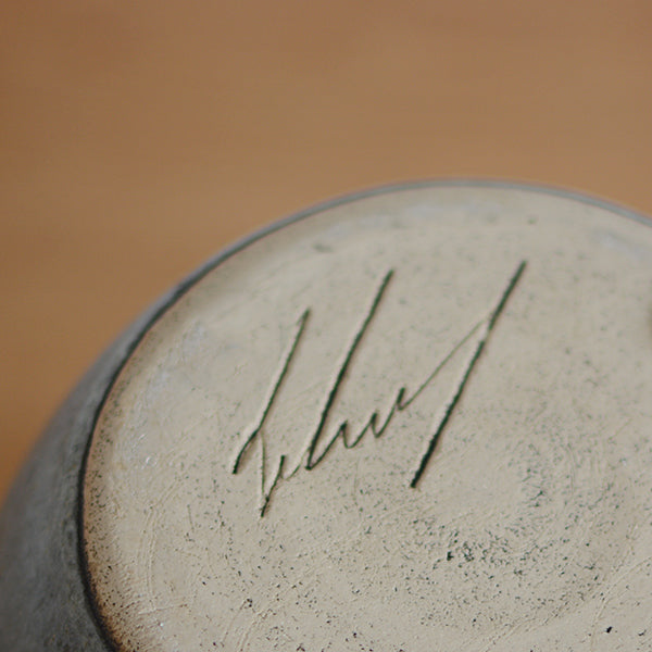 “作り手が表に出ず、使い手が使うためのものづくり”を信念に作品を作り続けています。現代的な美学を持ちながら、昔ながらのろくろ成形と釉掛けの手作業で生み出された器は、独特なテクスチャーやニュアンスを持ち、まるで自然が生み出したかのような印象を受けます。