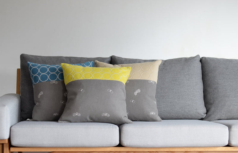 mina perhonen dop 「tambourine × choucho」クッションカバー イエロー×グレー - 北欧家具 北欧インテリア通販サイト greeniche (グリニッチ)