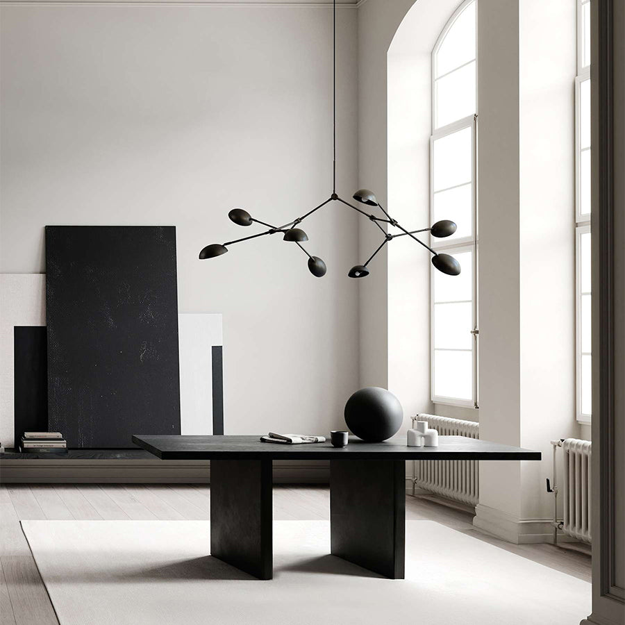 多数の腕とランプシェードで構成されているドロップシリーズのライト。
