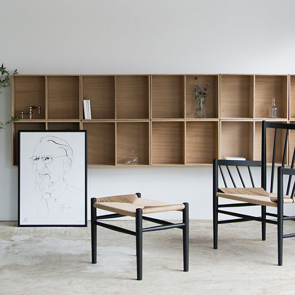 デンマーク近代家具の父と称されるコーア・クリントに師事したボーエ・モーエンセンがFDB モブラーの初代 企画デザイン担当責任者に就任し、ポール・M・ヴォルタが2 代目を務めました。ハンス・J・ウェグナーなど 名だたるデザイナーがプロジェクトメンバーに名を連ね、数々の名作を世に送り出し、それらはその後に生まれた デンマーク家具の模範となり、今日目にする数々のデンマークデザインが生まれたのです。