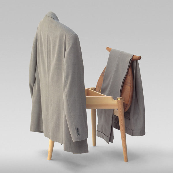 このチェアは建築学教授のスティーン・アイラー・ラスムセン、デザイナーであるボー・ボイエセンと就寝時の衣服をいかに効率的に整頓するかという長期にわたる話し合いの後に、