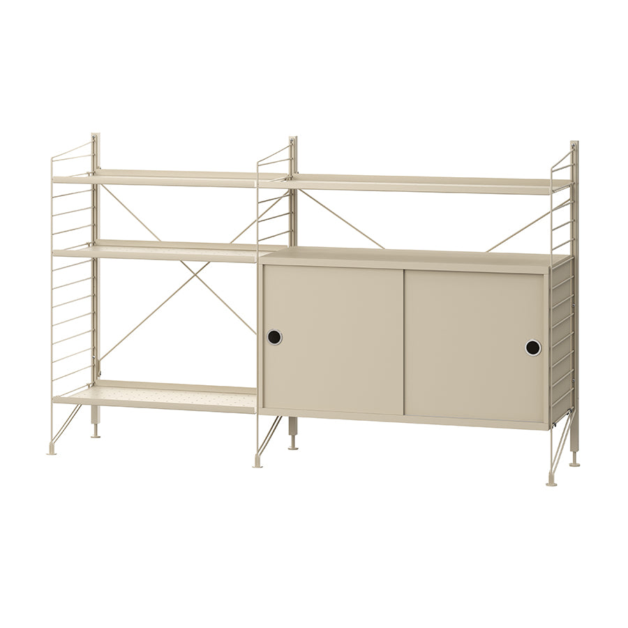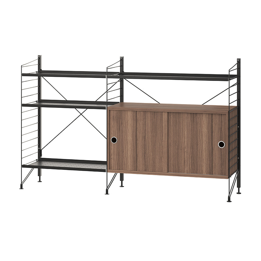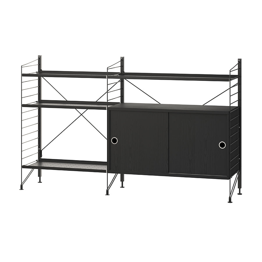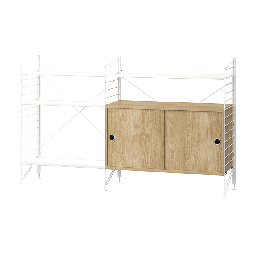 String フリースタンドシェルフ 2列 メタル棚板+キャビネット_デザイン