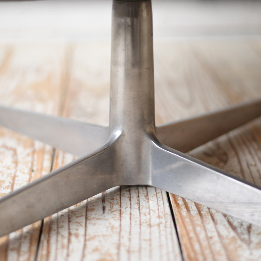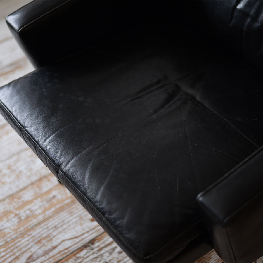 前回に引き続き自分好みのヌメ革指定にて丁寧に張り替えてもらいました。椅子本体は貴重なローズウッド材で個性的な木目と質感に満足しています。また、アームと脚の接合部分の美しさは別格です。