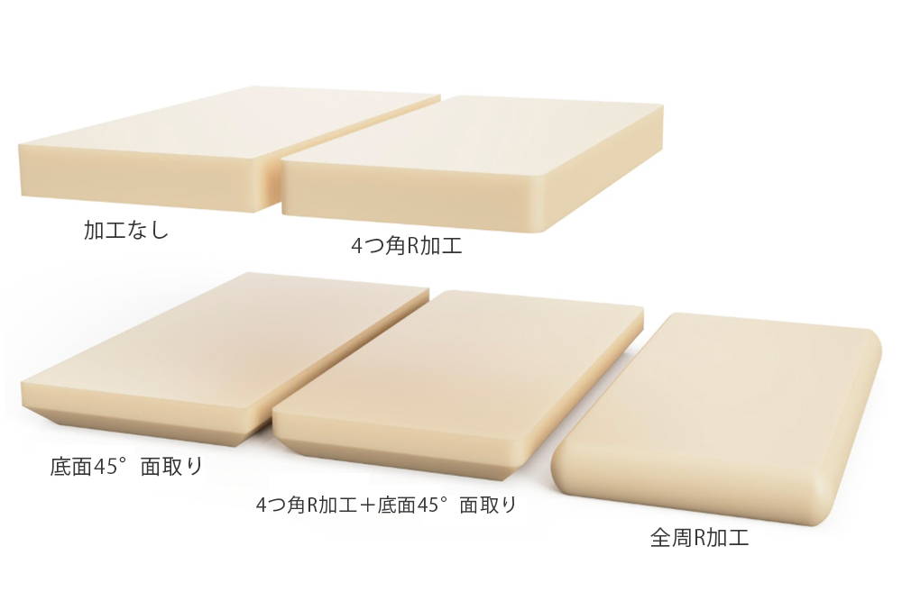 また、商品によってはあらかじめ角にR加工を施したデザインもございます。