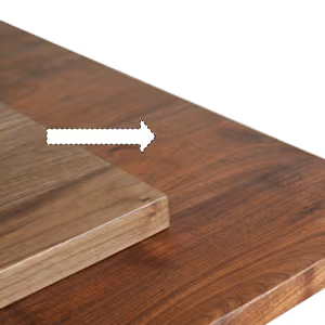 一方で、ご使用に差し支えない小さな節や、木目の個性(ウォルナットの白太やチェリーのガムポケットなど)は、自然に現れる表情については無垢材の魅力のひとつと考え、あえて選別することは行っておりません。