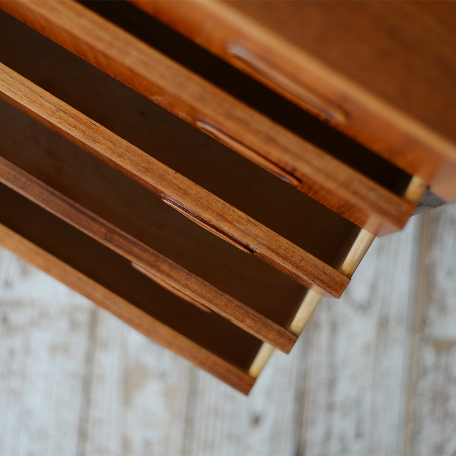 ぐらつきや強度・引き出しの滑りチェックは製造当時の強度を出来るだけ再現するように施していますが、ヴィンテージの風合いを敢えて残すこともあります。