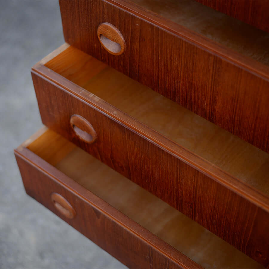 ぐらつきや強度・引き出しの滑りチェックは製造当時の強度を出来るだけ再現するように施していますが、ヴィンテージの風合いを敢えて残すこともあります。