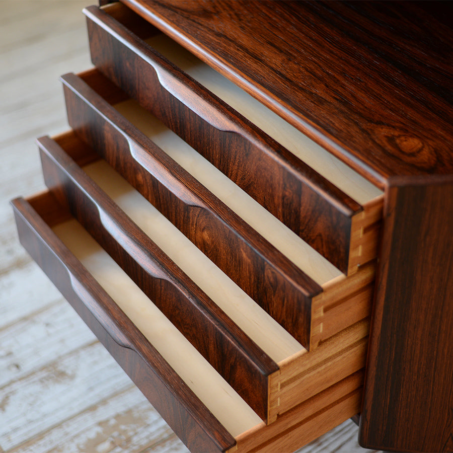 ぐらつきや強度・引き出しの滑りチェックは製造当時の強度を出来るだけ再現するように施していますが、ヴィンテージの風合いを敢えて残すこともあります。