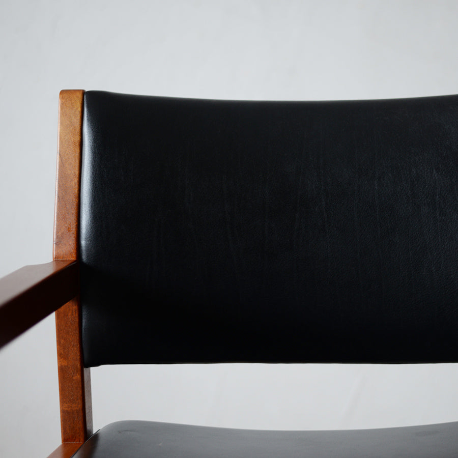 前回に引き続き自分好みのヌメ革指定にて丁寧に張り替えてもらいました。椅子本体は貴重なローズウッド材で個性的な木目と質感に満足しています。また、アームと脚の接合部分の美しさは別格です。