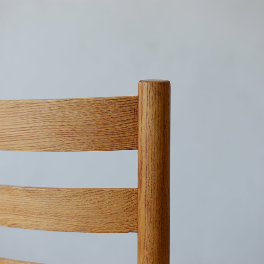 骨太なオーク材で構成されたフレームは、手に触れることでその意図された重みがじんわりと伝わってきます。