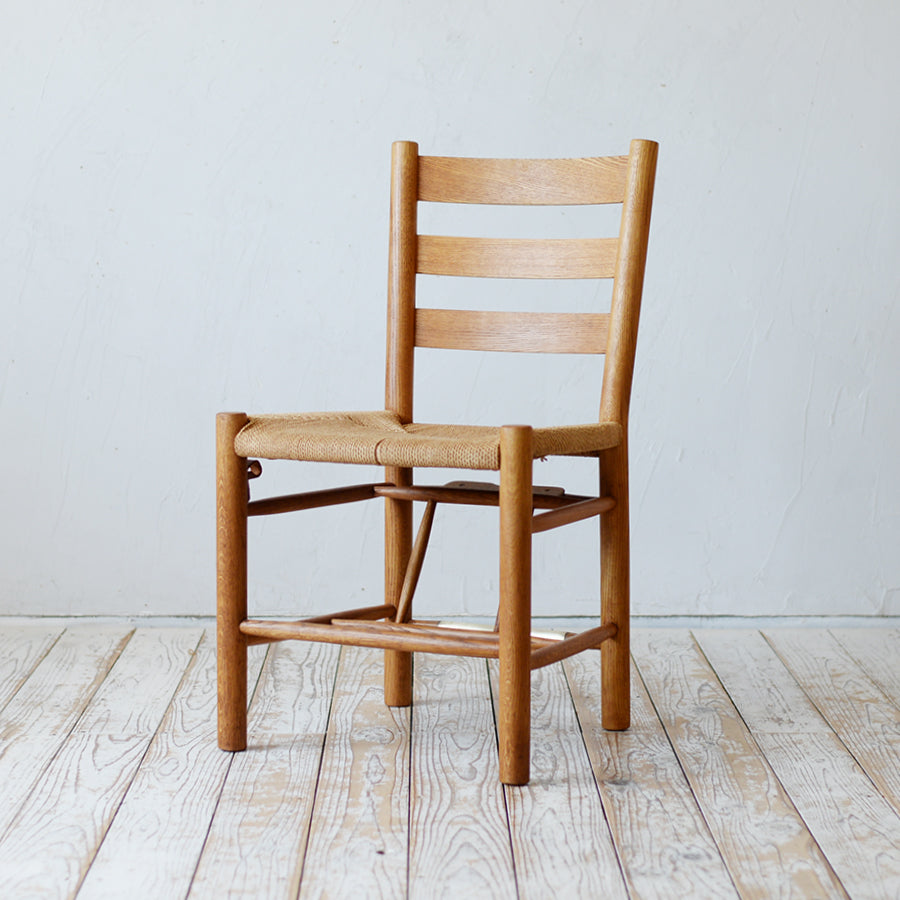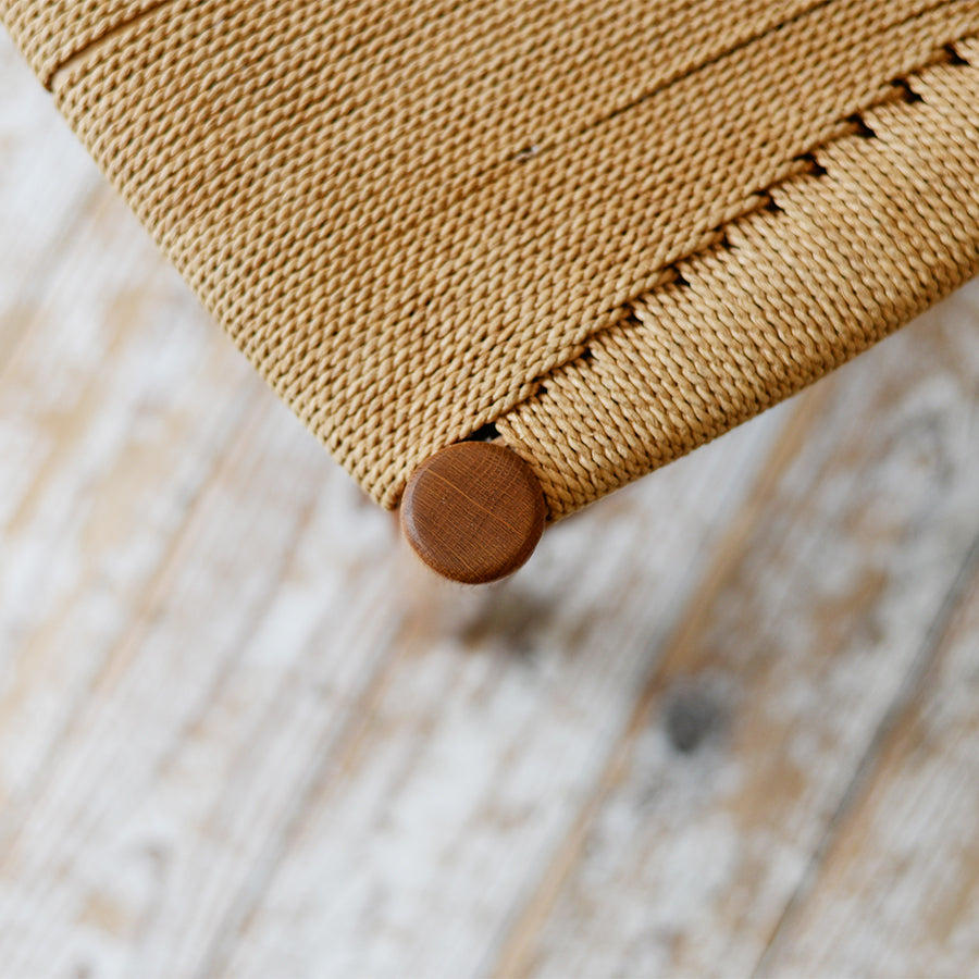 背面の貫には真鍮が配され、座面には丁寧に編まれたペーパコード。