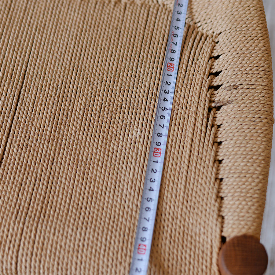 背面の貫には真鍮が配され、座面には丁寧に編まれたペーパコード。