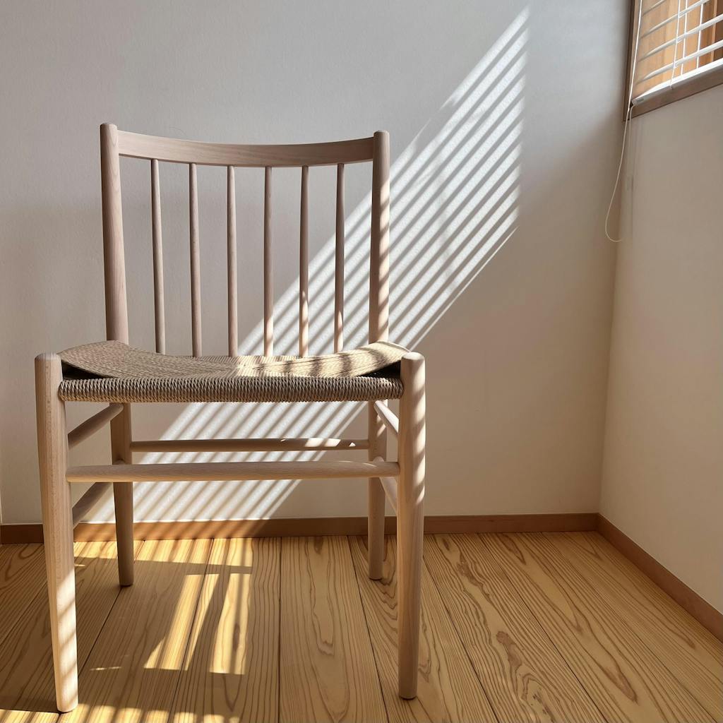 よりリラックス感を求めるのであれば背もたれがより寝ているYチェアの方が良いかもしれませんが、J80の背筋がピンと伸びる感じが心地よく、何より佇まいの美しさに圧倒されています。
