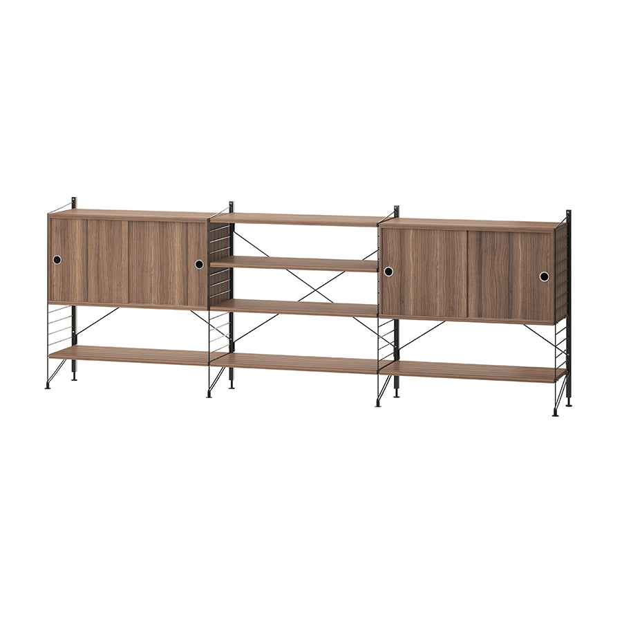 String フリースタンドシェルフ W78 D30 ×3列 棚板+キャビネット×2
