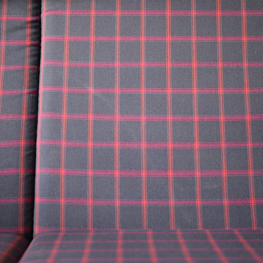 しっかりとした厚手の、ハリのある平織り生地。元は劇場ホールなどの張地として製造されており、強い耐久性を誇ります。 ウールとアクリルの混紡により、プレーンな張地でありながら高級感を感じられます。