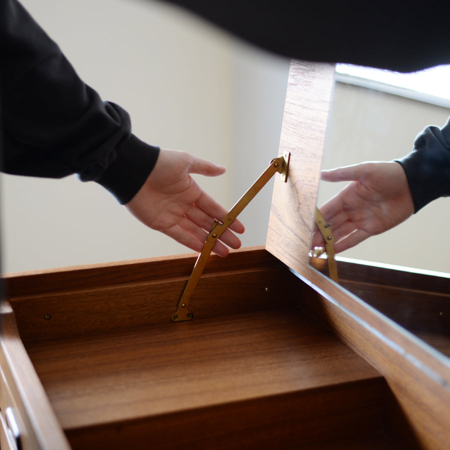 ぐらつきや強度・引き出しの滑りチェックは製造当時の強度を出来るだけ再現するように施していますが、ヴィンテージの風合いを敢えて残すこともあります。