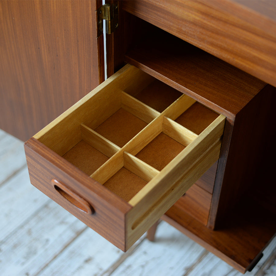 ぐらつきや強度・引き出しの滑りチェックは製造当時の強度を出来るだけ再現するように施していますが、ヴィンテージの風合いを敢えて残すこともあります。